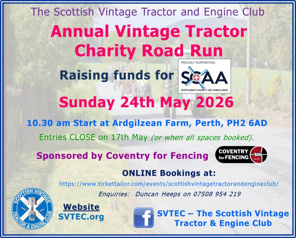 Vintage Tractor Charity Road Run in aid of SCAA – Scotland’s Charity Air Ambulance.